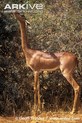 Ő egy zsiráfnyakú antilop (Litrocianus walleri), vagyis gerenuk. Úgy néz ki, mint egy elcseszett zsiráf. Vagy mint egy zsiráf-gazella keverék. Annyira nem viszi túlzásba az abszurditást, de egy helyet megérdemel.